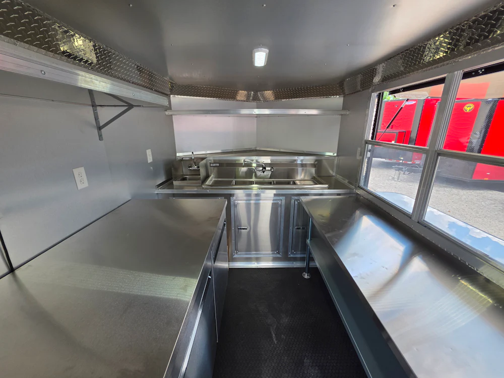 - Includes three-compartment sink and hand wash station