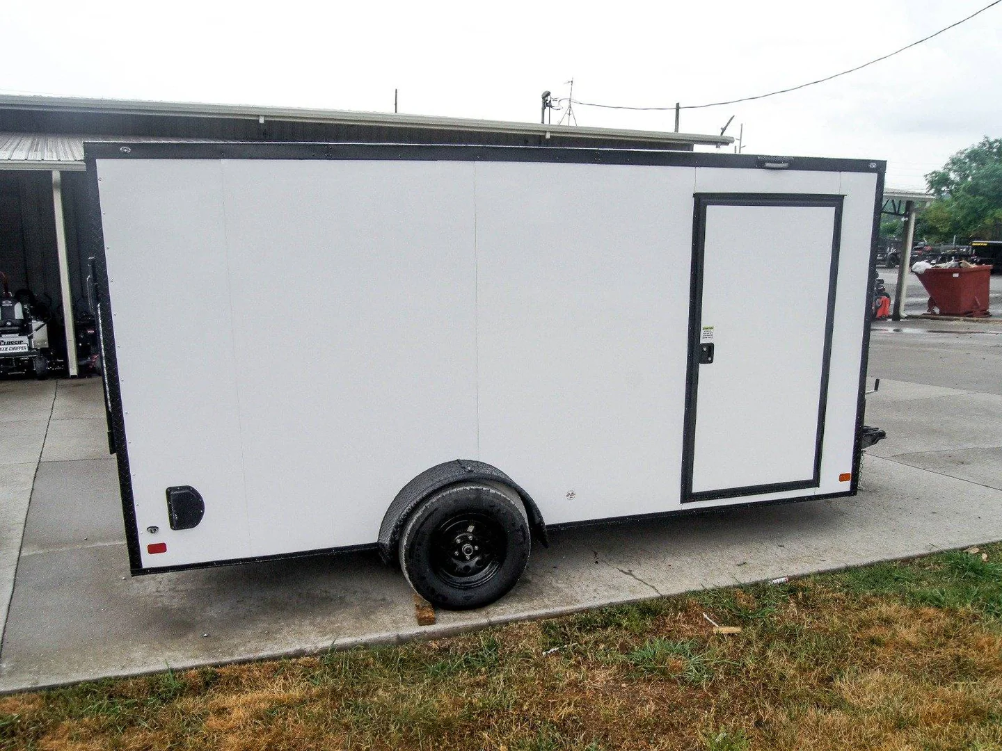 7×14 Enclosed Trailer White V-Nose Blackout Package 3,500lb Axle
