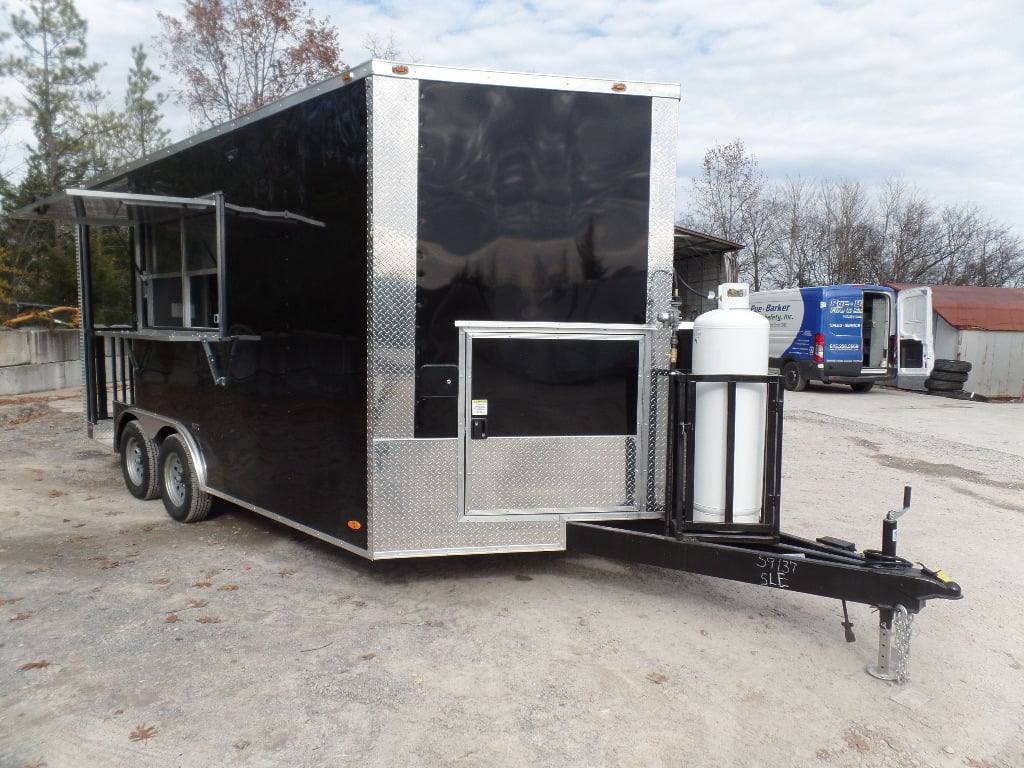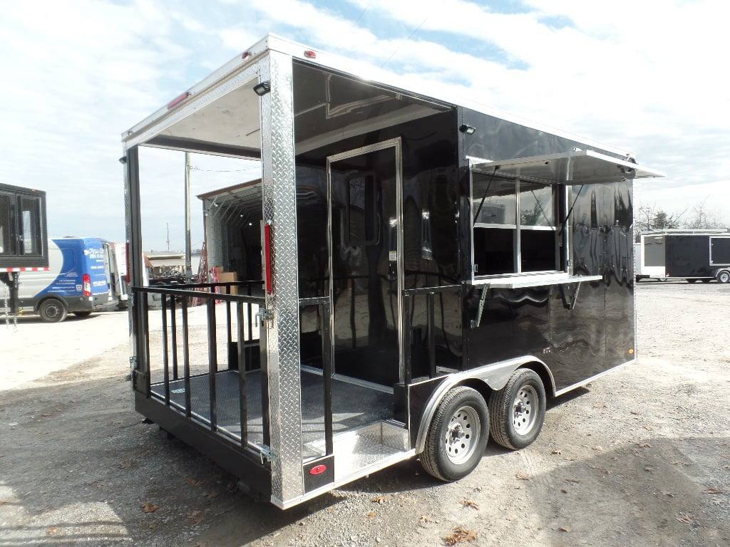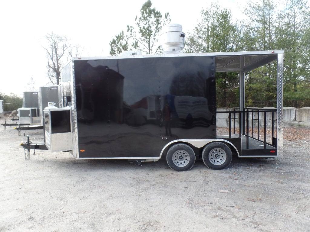 8.5′ x 16′ Black BBQ Porch Concession Food Trailer With Appliances